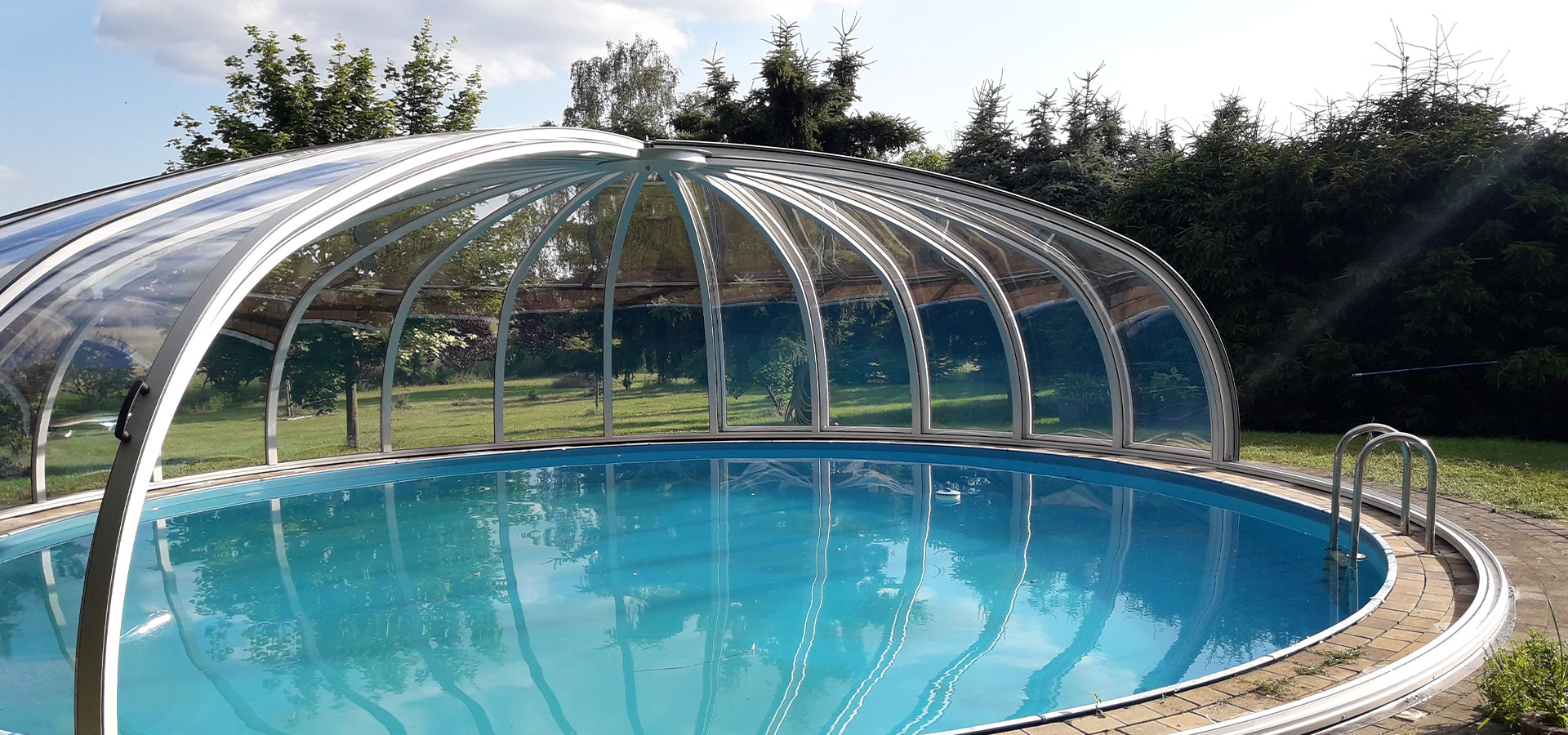 RUND hoch Poolüberdachung für runde Pools und bequemes Schwimmen