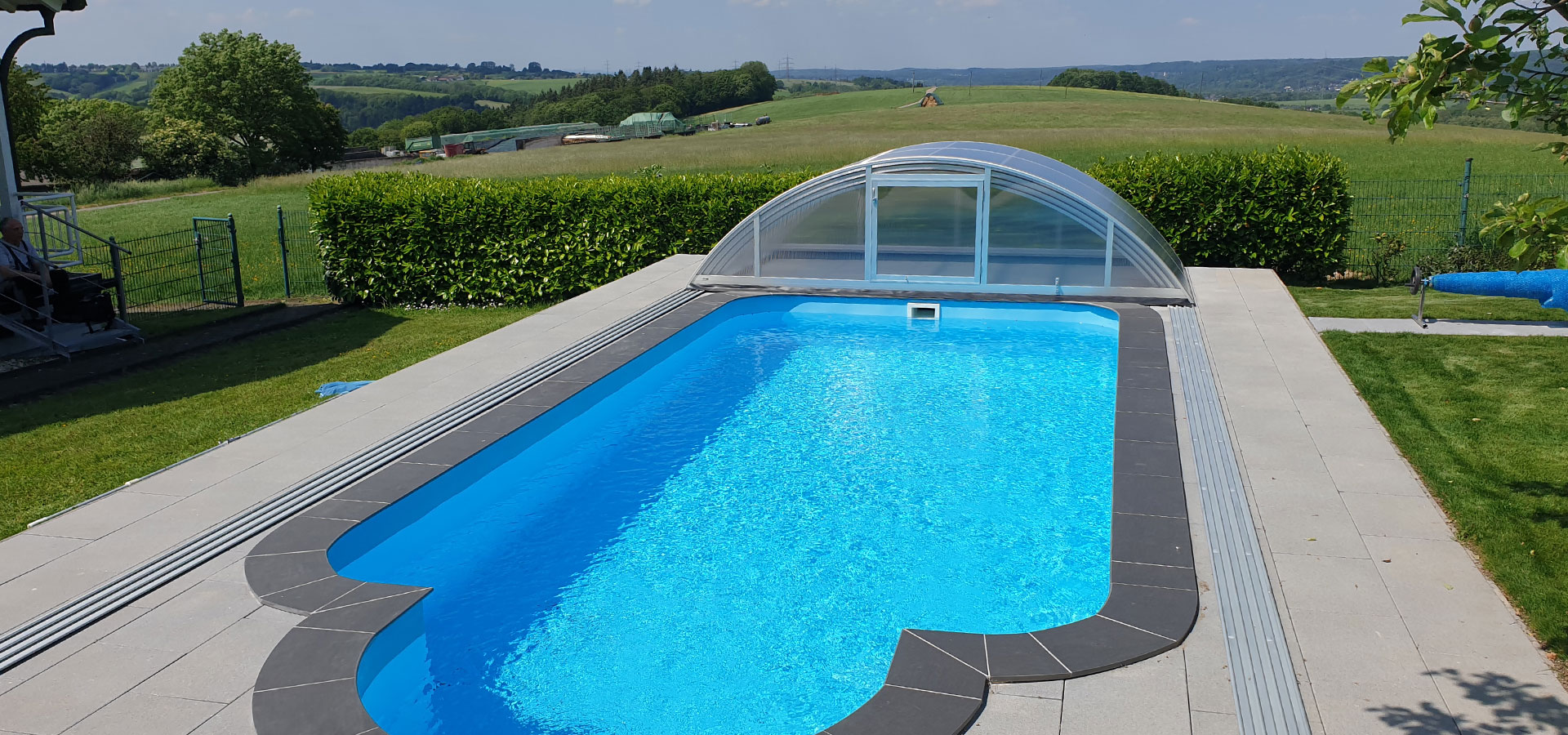 SELECT Halbhohe vollwertige Poolüberdachung zum kleinen Preis.