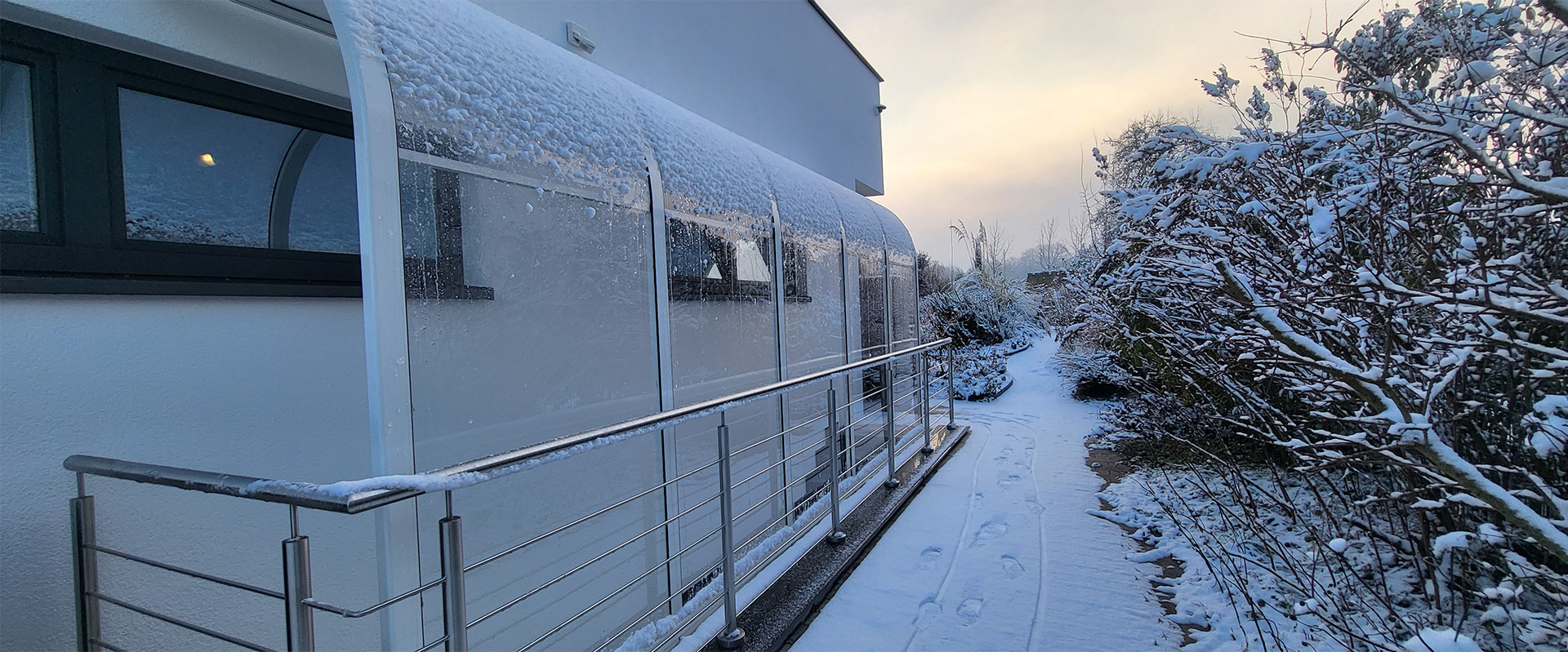 Die Überdachung für Kellerabgänge schützt zuverlässig vor Regen, Schnee und Schmutz und sorgt dafür, dass der Zugang stets trocken und sicher bleibt. Je nach Ausführung kann sie mit fest installierten oder aufschiebbaren Elementen ausgestattet werden, um eine optimale Belüftung zu ermöglichen. Mit ihrer gebogenen Form und hochwertigen Materialien fügt sich die Überdachung nahtlos in die bestehende Architektur ein und bietet eine langlebige sowie ästhetische Lösung. Gerade Formen und kantige Lösungen sind gleichermaßen möglich wie rundgebogene Formen.
